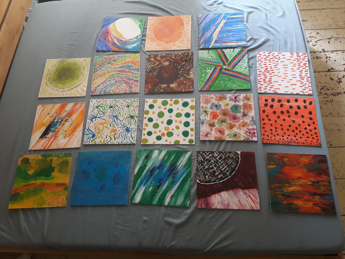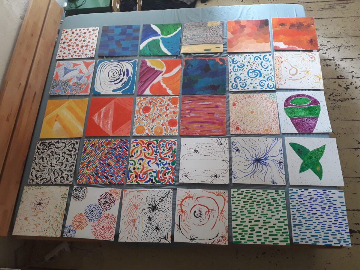 Extremely limited test pressing with custom one off artwork by Manuela Duarte, no two covers the same! Here is Manuela creating the covers...